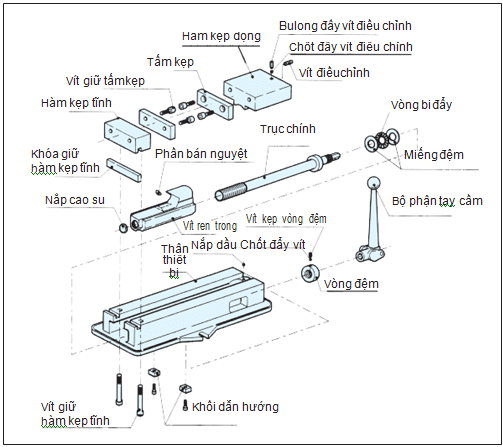 Giới thiệu phụ kiện Ê – Tô máy chính xác lực kẹp lớn bao gồm: