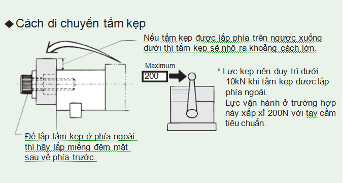 - Hàm kẹp động và phôi được ngăn nâng lên nhờ cơ chế chống nổi.