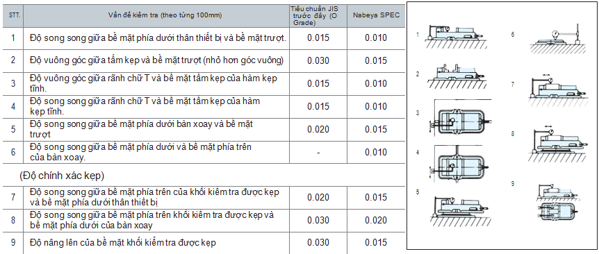 ra và phục hồi độ chính xác dễ dàng. - Độ chính xác song song của các sản phẩm thông số tương thích là trong khoảng 0.01